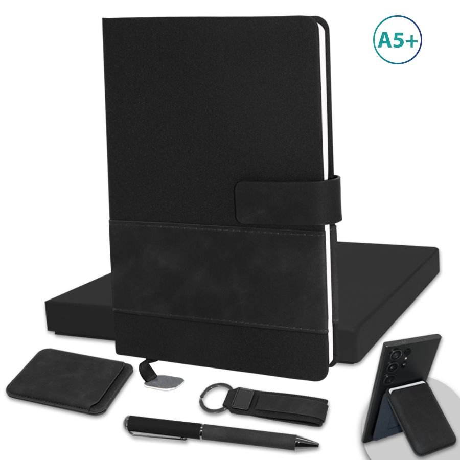 L’excellence et la distinction réunies dans un écrin unique. Ce coffret cadeau haut de gamme est la solution ultime pour vos relations publiques les plus importantes. Conçu pour offrir une image de marque cohérente et luxueuse, cet ensemble coordonné se compose de quatre accessoires essentiels, tous habillés d’un revêtement soft-touch bleu nuit profond.